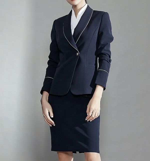 時(shí)尚職業(yè)裝注重“版形的創(chuàng)新、細(xì)節(jié)的突顯、穿著的合體”。小細(xì)節(jié)的稍作改良創(chuàng)新,更顯活力而不失時(shí)尚。版形以意式收身版形為主、講究領(lǐng)口、袖口、面料的筆挺,讓人顯得更筆挺、利索,精神。